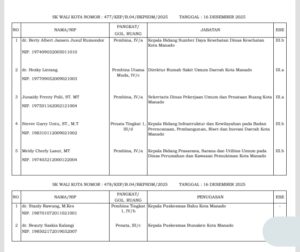 “Jalankan tugas dengan baik, jaga integritas, dan tunjukkan prestasi. Karena prestasi kalian akan menjadi prestise, baik bagi diri sendiri maupun sebagai aparatur sipil negara yang mengabdi di Pemerintah Kota Manado,”pungkasnya.(*)